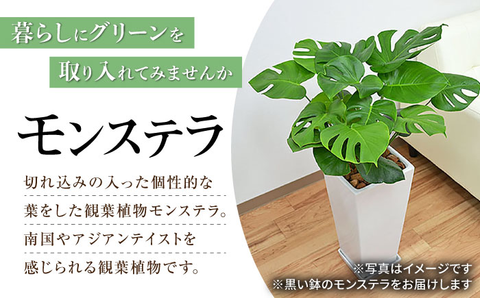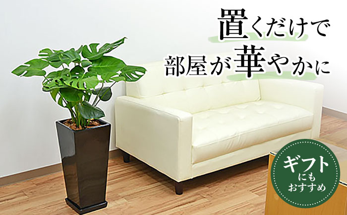 観葉植物 モンステラ 8号 陶器鉢植え 黒(80~100cm前後)/ 室内観葉植物 インテリア ロングスクエア 大型 おしゃれ 鉢植え / 大村市 /琴花園 [ACYK034]