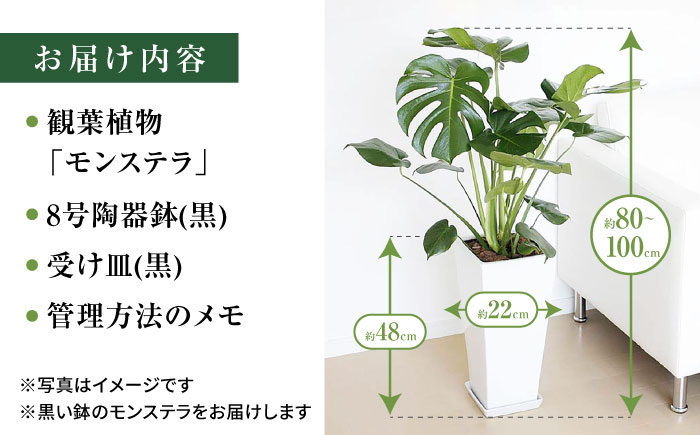 - 観葉植物 モンステラ 8号 陶器鉢植え 黒(80~100cm前後)/ 室内観葉植物 インテリア ロングスクエア 大型 おしゃれ 鉢植え / 大村市 /琴花園 [ACYK034]