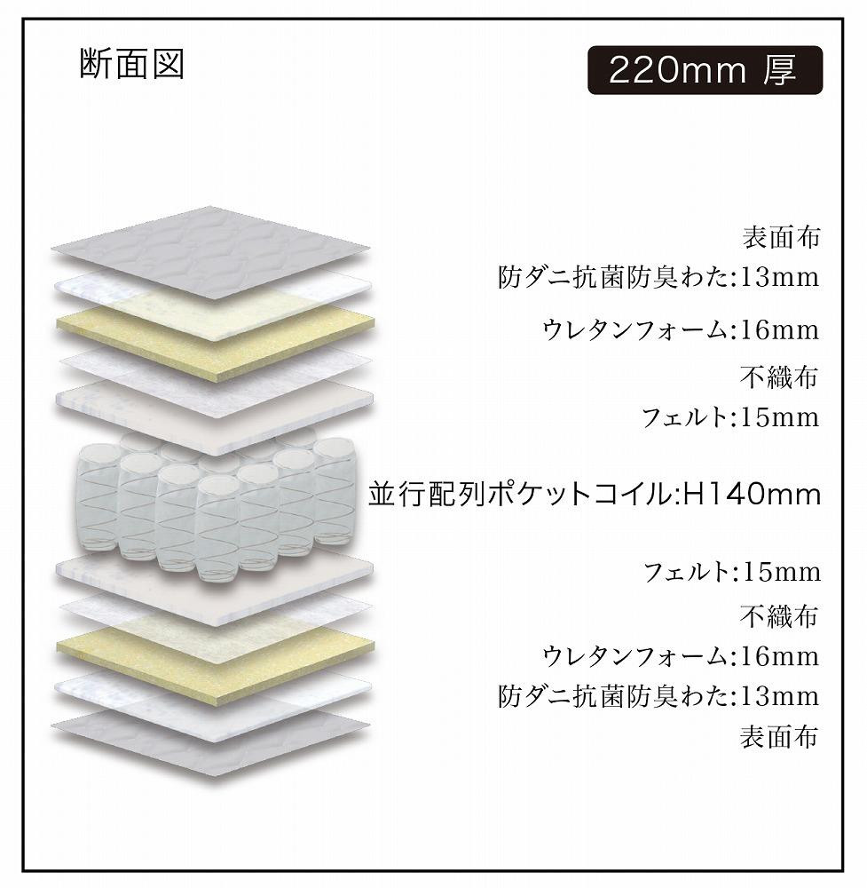 セミダブルサイズ 国産ポケットコイル マットレス グランライトベーシック【全2色】