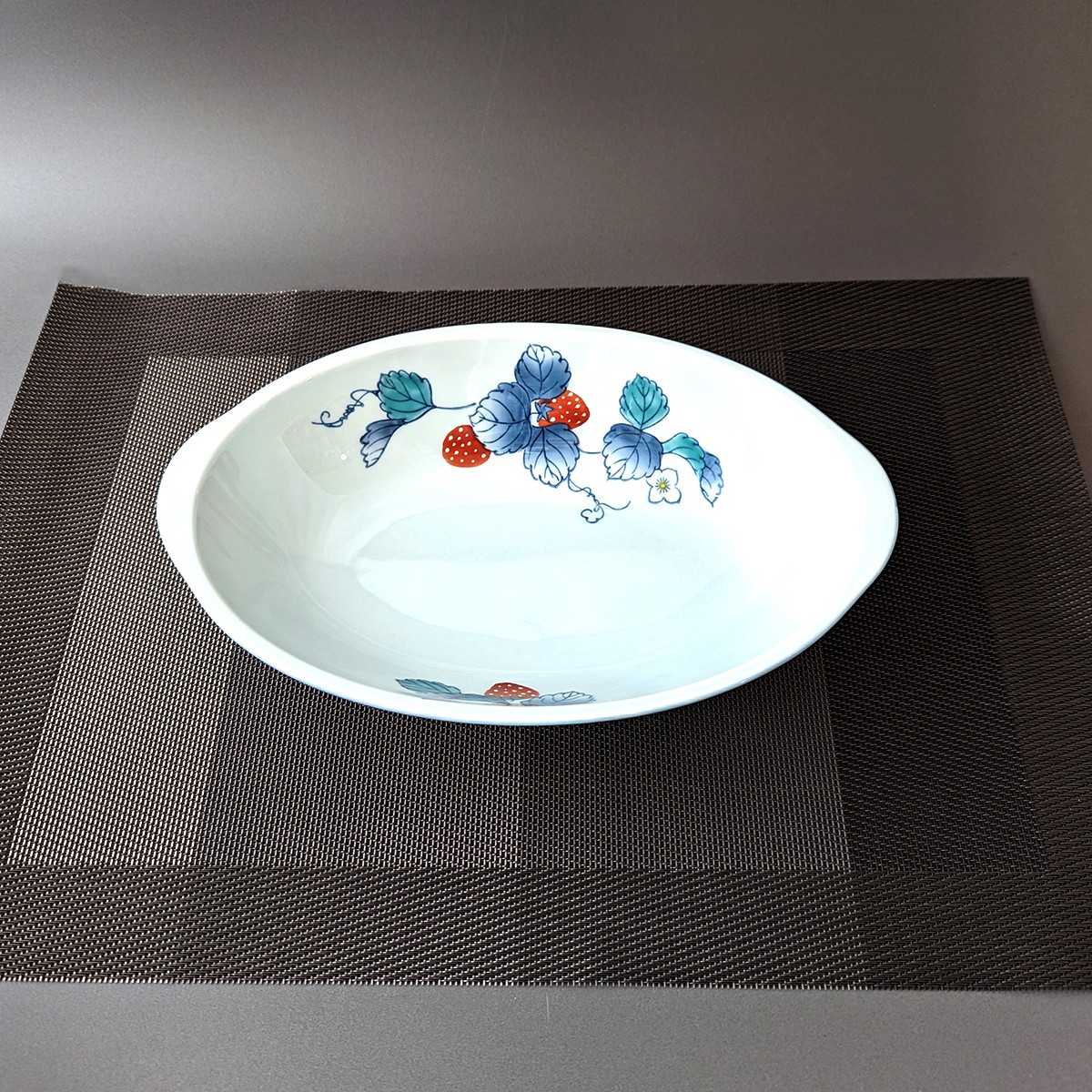 - 有田焼 華山窯 いちご耳付楕円パスタ鉢【東洋セラミックス】食器 器 うつわ オーバル皿 いちご 手描き パスタ 楕円 皿 A18-264