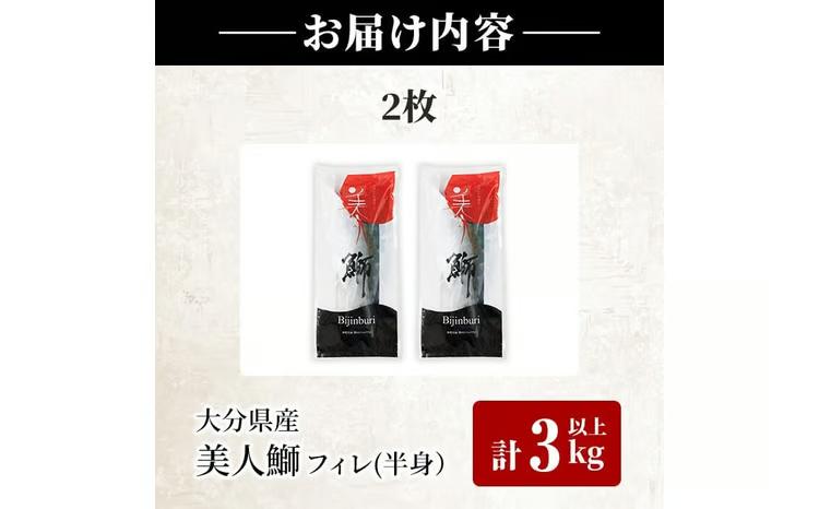 大分県産 美人鰤 フィレ (2枚・1枚あたり1.5kg以上) 鰤 ブリ フィーレ 半身 鮮魚 冷蔵 養殖 国産 大分県 佐伯市【GO018】【水元】