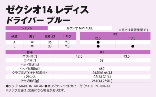 ゼクシオ 14 レディス ドライバー ブルー《2025年モデル》ゴルフボールセット_GZ-C703 _(都城市)ダンロップ ゼクシオ 14シリーズ 2025年モデル ドライバー MP1400 カーボンシャフト ゴルフ用品 スポーツ用品 日本製 MADE IN JAPAN 国産 ゴルフクラブ