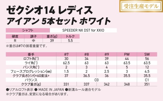 【受注生産】ゼクシオ 14 レディス アイアン ホワイト SPEEDER NX DST for XXIO 5本セット《2025年モデル》_IE-C704-SP _(都城市)ダンロップ ゼクシオ 14シリーズ 2025年モデル アイアン SPEEDER NX カーボンシャフト レディス ゴルフ用品 スポーツ用品 日本製 MADE IN JAPAN 国産 ゴルフクラブ