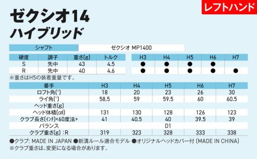 - ゼクシオ 14 ハイブリッド レフトハンドモデル《2025年モデル》_IF-C705 _(都城市)ダンロップ ゼクシオ 14シリーズ 2025年モデル ハイブリッド MP1400 カーボンシャフト レフトハンド ゴルフ用品 スポーツ用品 日本製 MADE IN JAPAN 国産 ゴルフクラブ