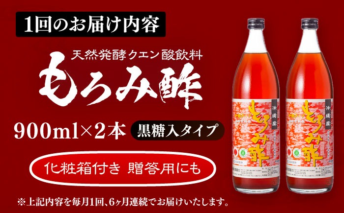 【全6回定期便】天然発酵クエン酸飲料 もろみ酢 (黒糖入り) 2本入り (900ml×2本) 黒糖 健康飲料 健康食品 クエン酸 国産 沖縄市 / 新里酒造株式会社[BCAS023]