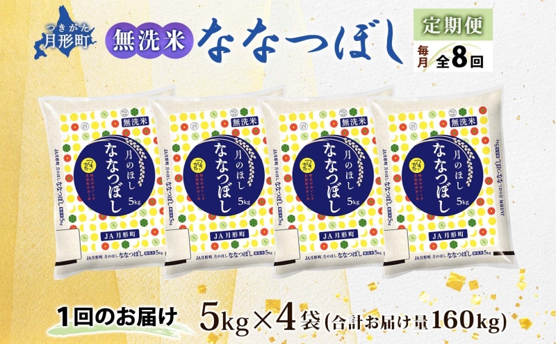 【令和8年産先行予約】北海道 定期便 8ヵ月連続8回 令和8年産 ななつぼし 無洗米 5kg×4袋 特A 米 白米 ご飯 お米 ごはん 国産 ブランド米 時短 便利 常温 お取り寄せ 産地直送 送料無料 月形