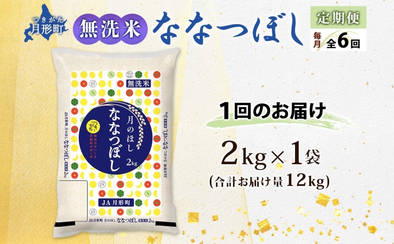 【令和8年産先行予約】北海道 定期便 6ヵ月連続6回 令和8年産 ななつぼし 無洗米 2kg×1袋 特A 精米 米 白米 ご飯 お米 ごはん 国産 ブランド米 常温 お取り寄せ 産地直送 送料無料 月形