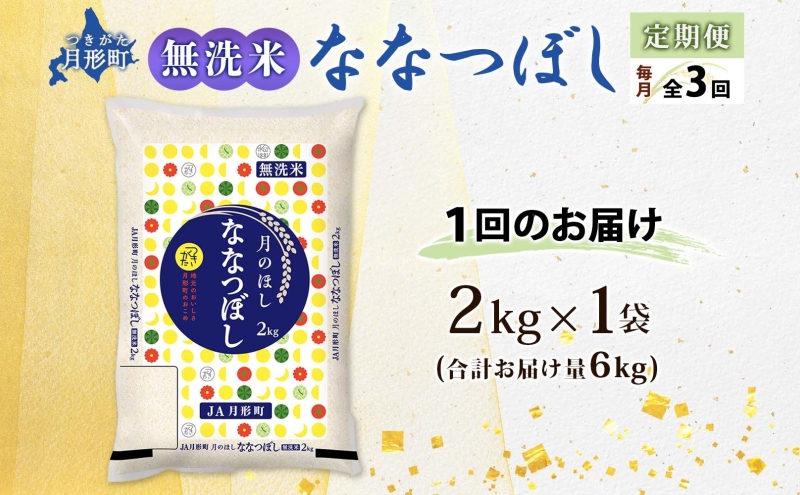 【令和8年産先行予約】北海道 定期便 3ヵ月連続3回 令和8年産 ななつぼし 無洗米 2kg×1袋 特A 精米 米 白米 ご飯 お米 ごはん 国産 ブランド米 常温 お取り寄せ 産地直送 送料無料 月形