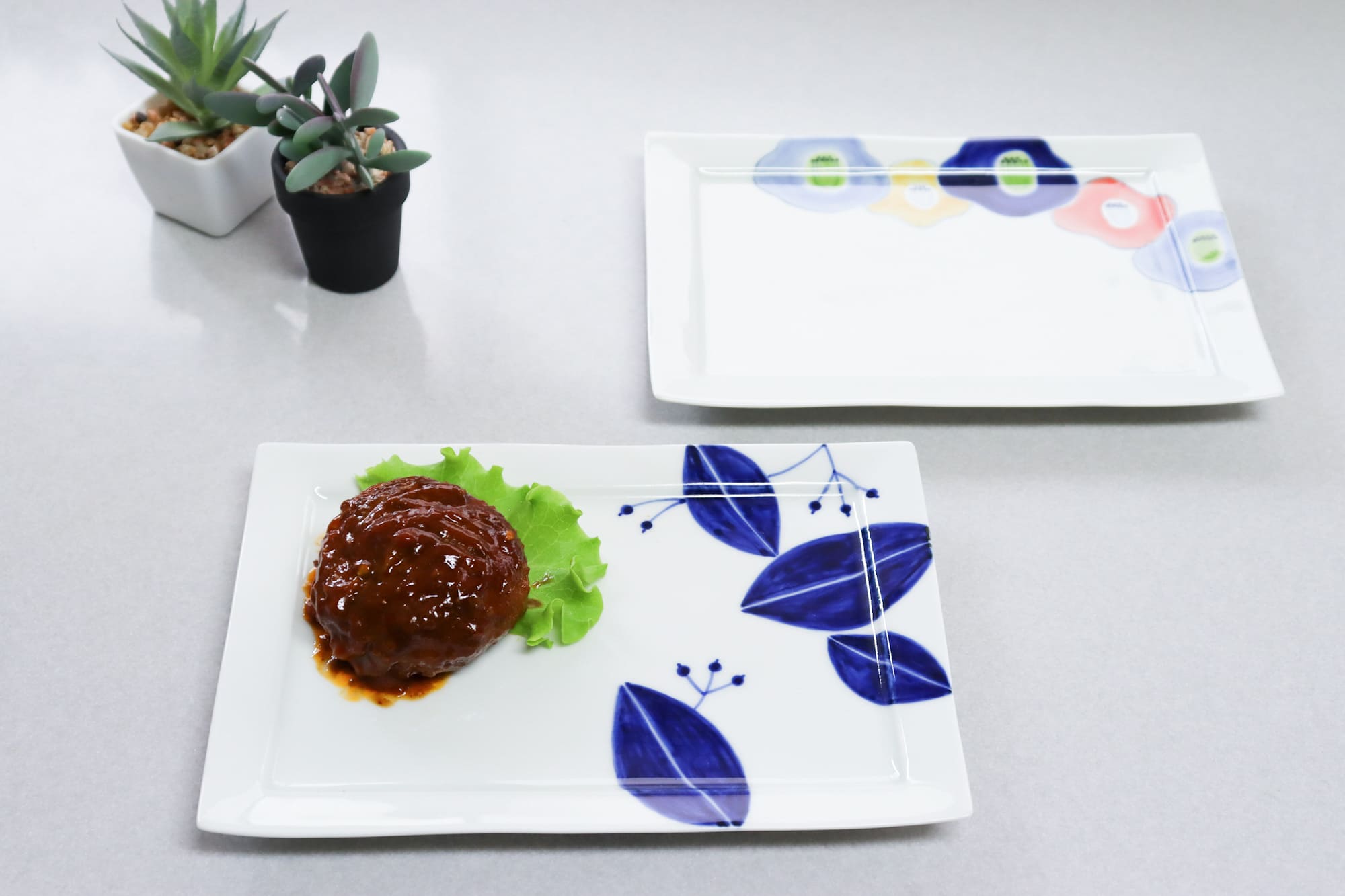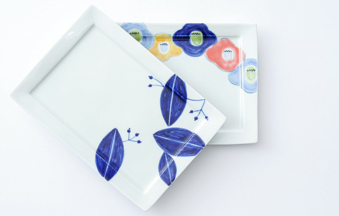 - 【ふるさと納税】有田焼 長角トレイ hanahanaと染付リーフの2枚セット 大慶 A24-24