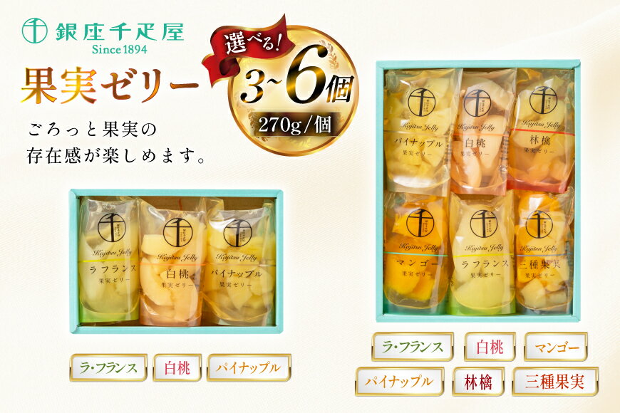 【ふるさと納税】 【選べる内容量】 果実 ゼリー 詰め合わせ [銀座千疋屋 山形県 高畠町 tk06bgj570002] フルーツ 果物 スイーツ ラ・フランス 白桃 桃 もも モモ くだもの 黄桃 林檎 りんご マンゴー パイン パイナップル 常温 千疋屋 セット 3個 6個