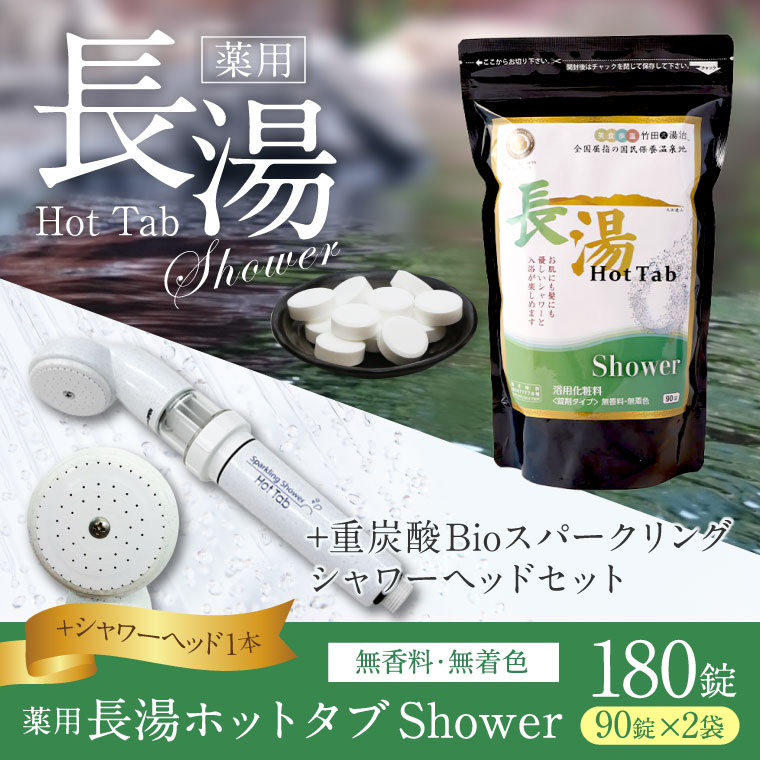 - 【ふるさと納税】【数量限定】ホットタブ 重炭酸Bioスパークリングシャワー+長湯ホットタブshower(シャワー) セット 計180錠(90錠入×2袋) シャワーヘッド 浴用化粧料 重炭酸湯 重炭酸入浴剤 汚れ ニオイ バス用品 大分県 竹田市 送料無料
