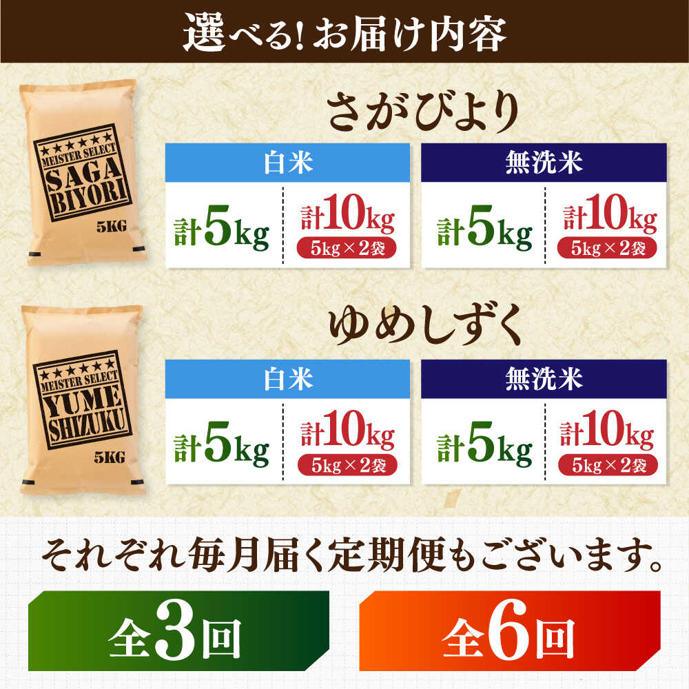 - 【ふるさと納税】【選べる品種】【選べる単品・定期便】さがびより 夢しずく 白米 無洗米 計5kg-60kg / 五つ星お米マイスター厳選 特A米 特A評価 / 佐賀県 / 大塚米穀店[41ANAD011]