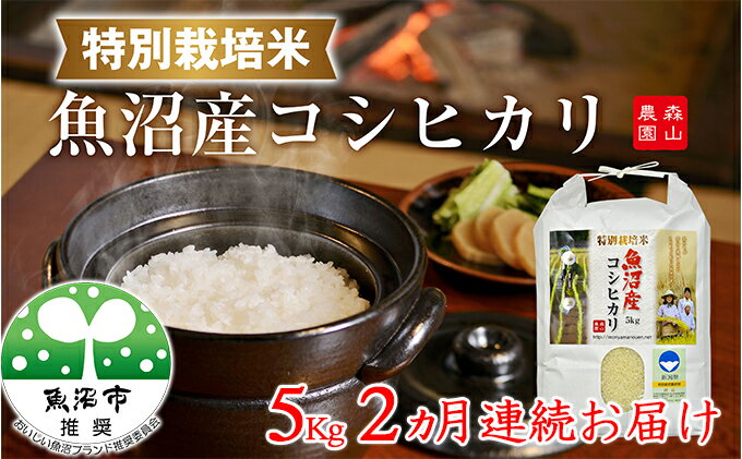 【ふるさと納税】2ヶ月連続お届け 森山農園特別栽培米魚沼産コシヒカリ(新潟県認証)5kg お米 お届け:寄附入金確認月の翌月より発送