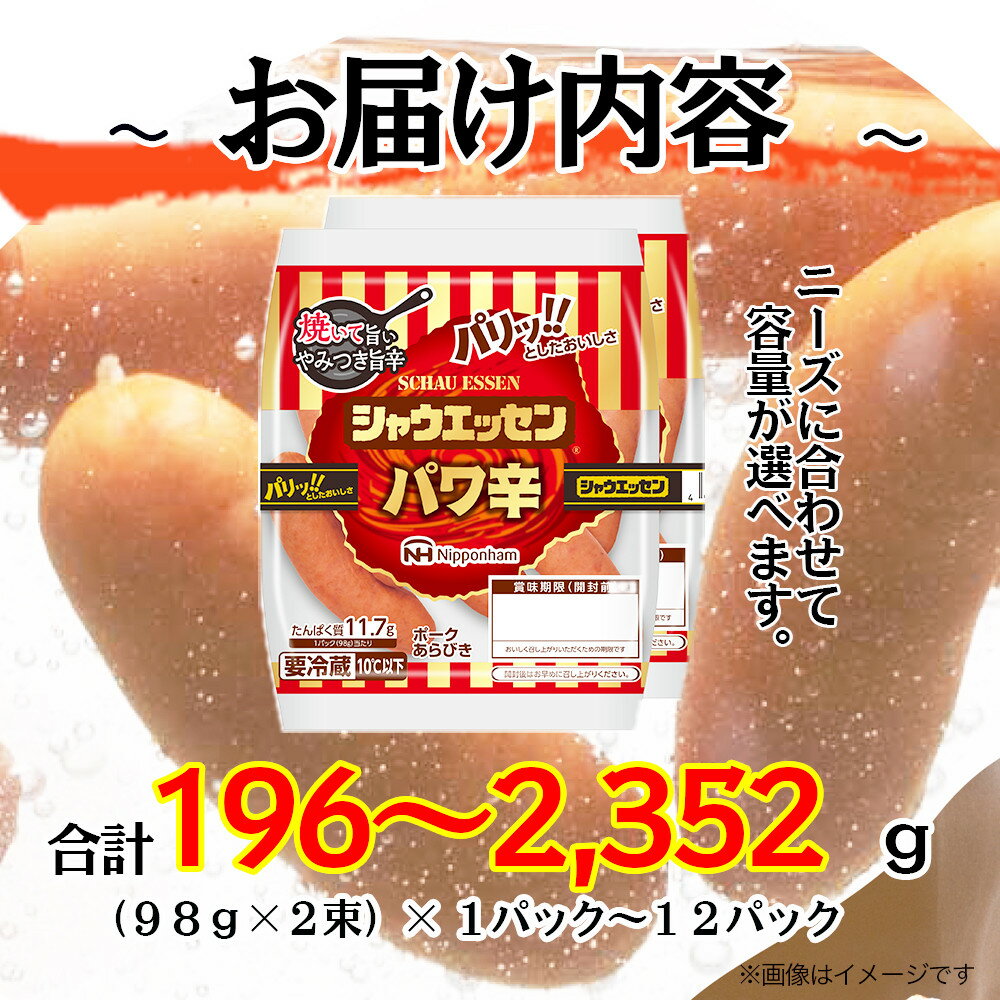 【ふるさと納税】【容量選択可】【ふるさと納税】シャウエッセン パワ辛 98g×2束(1パック or 6パック or 12パック) | 食品 あらびき ウインナー ソーセージ 国内製造 北海道 旭川 納税 返礼品 日本ハム お取り寄せグルメ 定期便 大容量 お弁当 惣菜 おつまみ 送料無料