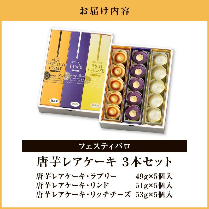 【ふるさと納税】 フェスティバロ 唐芋レアケーキ 3本セット(ラブリー/リンド/リッチチーズ) ケーキ レアケーキ 洋菓子 お菓子 バレンタイン 父の日 母の日 ホワイトデー【フェスティバロ社】