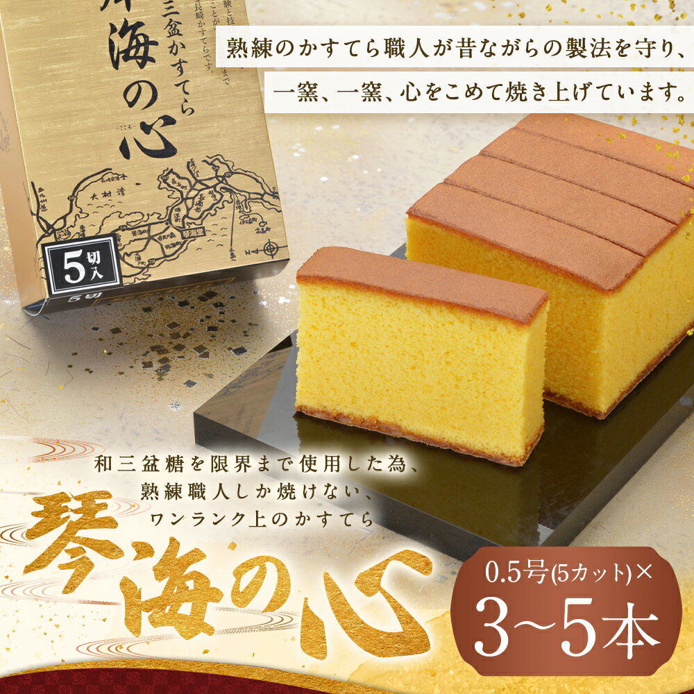 【ふるさと納税】【7営業日以内発送】琴海の心 0.5号 (5カット) 選べる本数 ( 3本 / 5本 ) | 琴海堂 和三盆糖を限界まで使用した為、熟練職人しか焼けない、ワンランク上のかすてら カステラ カット済み カットあり 和三盆 ざらめ おやつ 菓子 スイーツ