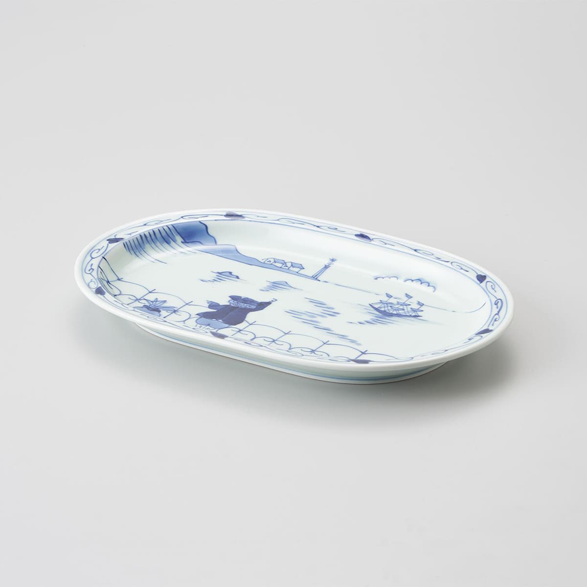 - 【ふるさと納税】有田焼 しん窯 青花 後姿小判プレート【小島芳栄堂】食器 うつわ 器 手描き オーバル A22-31