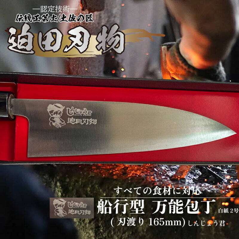 【ふるさと納税】日本三大刃物 土佐打ち刃物 舟行型 万能包丁 16.5cm 白鋼 白紙2号 迫田刃物 プロ 日用品 キッチン 伝統 職人 鍛造 包丁 調理 高知県 須崎市 しんじょう君 SD042
