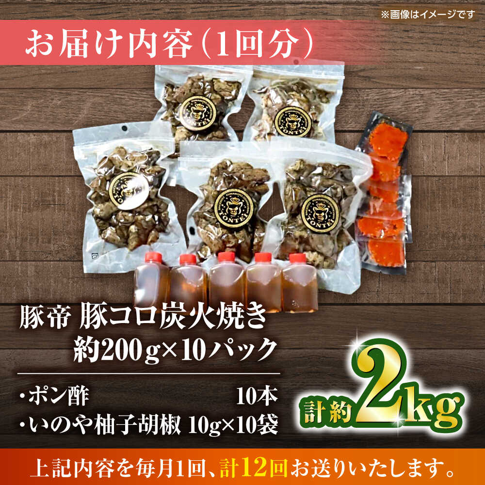 - 【ふるさと納税】【全12回定期便】 豚帝 豚コロ炭火焼き 約200g×10pc(密封用チャック袋付き)【KRAZY MEAT(小田畜産)】[ZCP177]