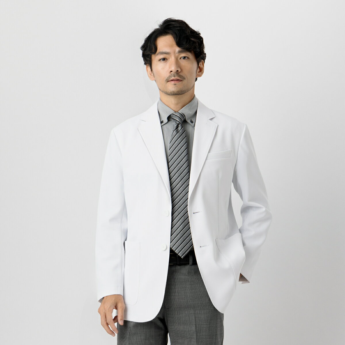 - 【ふるさと納税】レピウスの白衣 【メンズ】 テーラードカラードクタージャケット / ネーム刺繍付き 男性用 ユニフォーム 制服 医療用 診療衣 クリニック 医師 薬剤師 長袖 おしゃれ ホワイト
