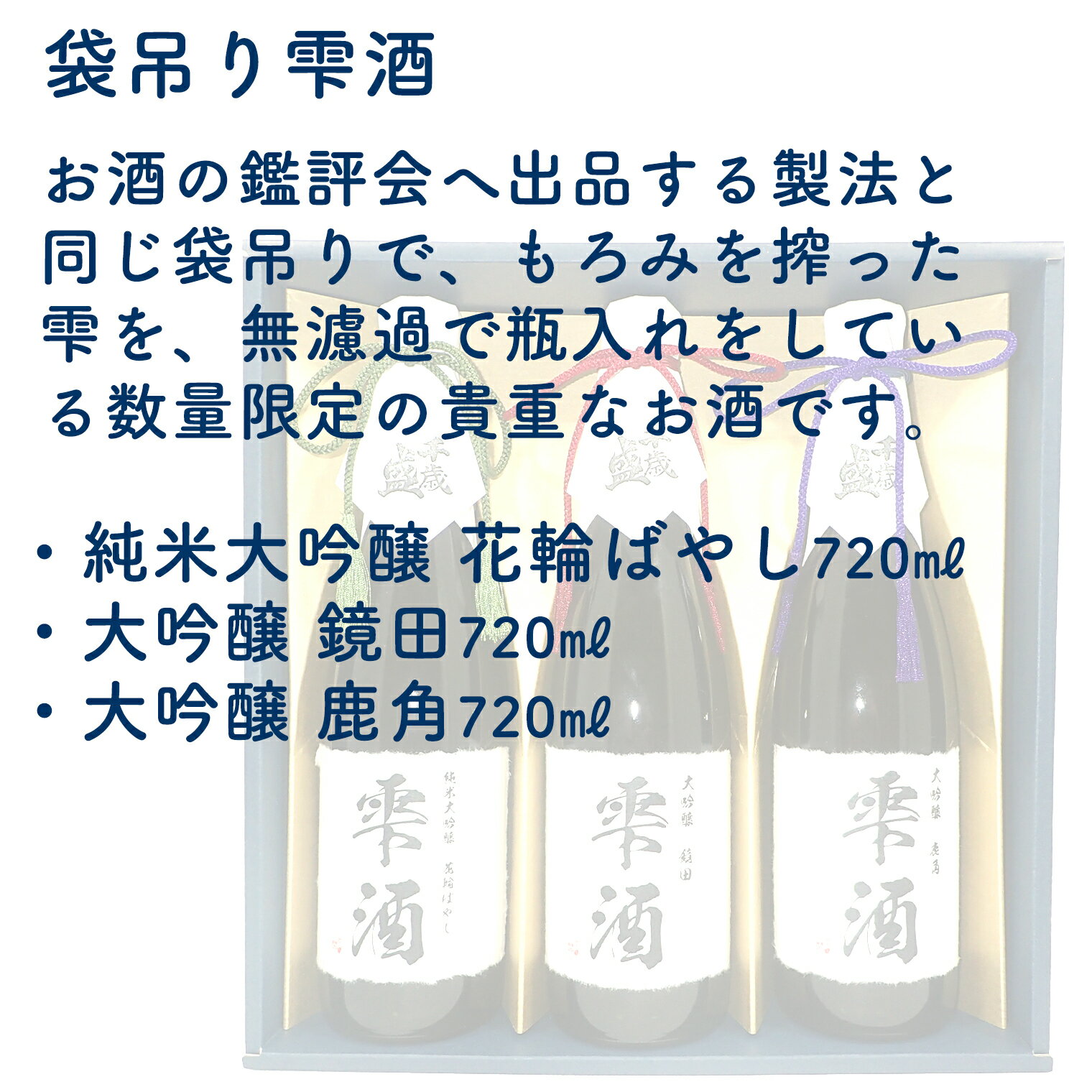 【ふるさと納税】 千歳盛 中取り無濾過袋吊り雫酒 3本セット 720ml × 3本( 純米大吟醸 ・ 大吟醸 ) お酒 日本酒 詰め合わせ 飲み比べ 飲みくらべ お中元 お歳暮 お取り寄せ 母の日 父の日 ギフト 故郷 秋田 あきた 鹿角市 鹿角 送料無料 【千歳盛酒造】