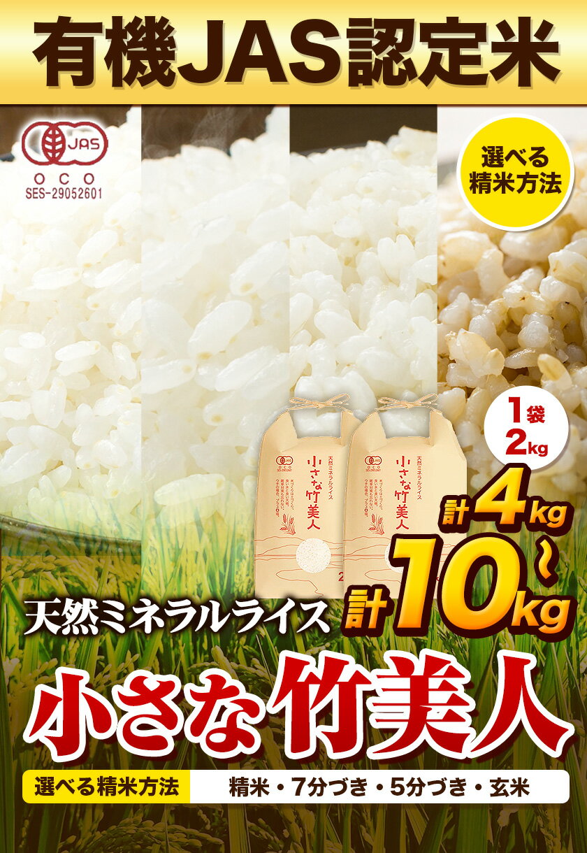 【ふるさと納税】米 玄米 令和7年産 選べる精米方法 有機JAS認定米 精米 玄米 5分づき米 7分づき米 小さな竹美人 4kg(2kg×2袋) 10kg(2kg×5袋) 《精米方法をお選びください》白米 株式会社コモリファーム