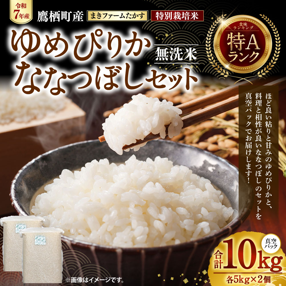 - 【ふるさと納税】【 令和7年産 】 特別栽培米ゆめぴりか ななつぼし セット ( 無洗米 ) 特Aランク 真空パック 各5kg 北海道 鷹栖町 まきファームたかす 米 コメ こめ ご飯 無洗米 お米 ゆめぴりか ななつぼし コメ 無洗米