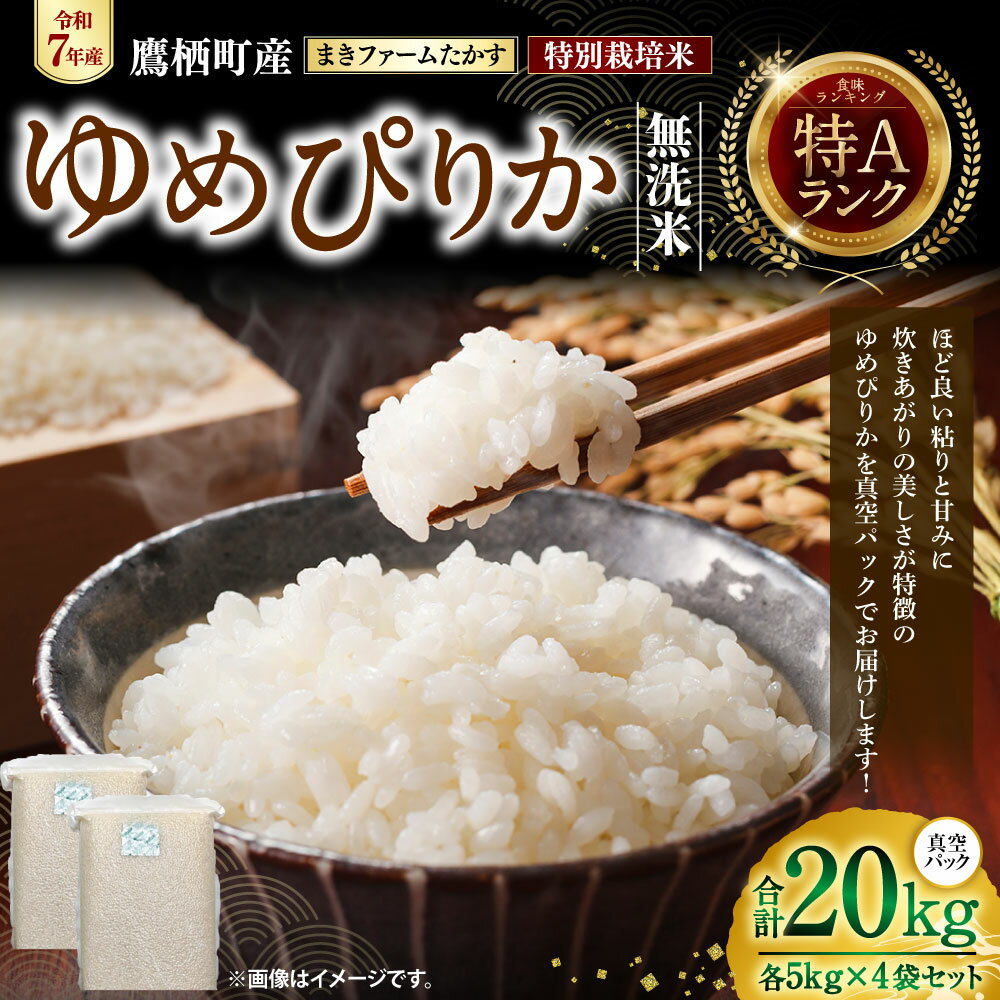 - 【ふるさと納税】【 令和7年産 】特別栽培米 ゆめぴりか ( 無洗米 ) 特Aランク 真空パック 20kg 5kg×4袋 セット 北海道 鷹栖町 まきファームたかす 米 コメ こめ ご飯 白米 お米 ゆめぴりか コメ無洗米