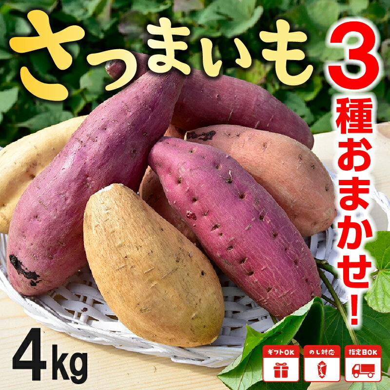 - 【ふるさと納税】【お歳暮に】さつまいも 3種 おまかせ 4kg セット 芋 紅さつま 栗こがね シルクスイート 紫芋 黄金千貫 安納芋 お歳暮 ギフト のし対応 贈答品 焼き芋 せごどんファーム 国産 野菜 鹿児島県産 南九州市 送料無料