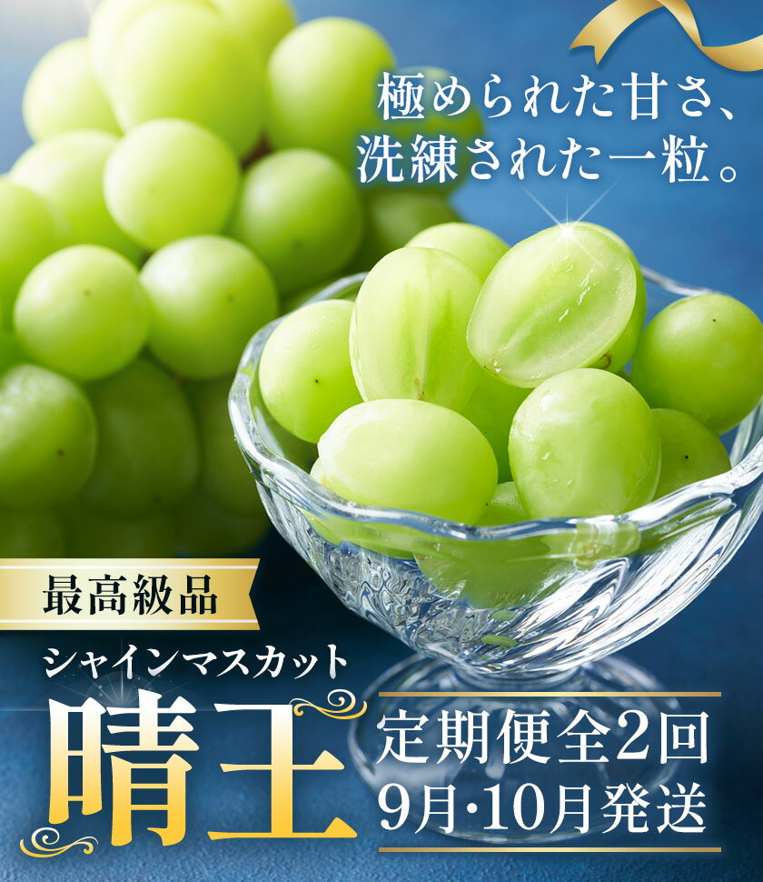 - 【2026年発送先行予約】【ふるさと納税】シャインマスカット 晴王 2ヶ月 定期便 1房 約650g 2房 約1.3kg 最高級品 シャイン マスカット《2026年9月中旬-10月中旬頃出荷予定》 晴レ乃青果(岡山中央卸売市場店(富士紙工有限会社)) 送料無料 岡山県 果物 【配送不可地域あり】