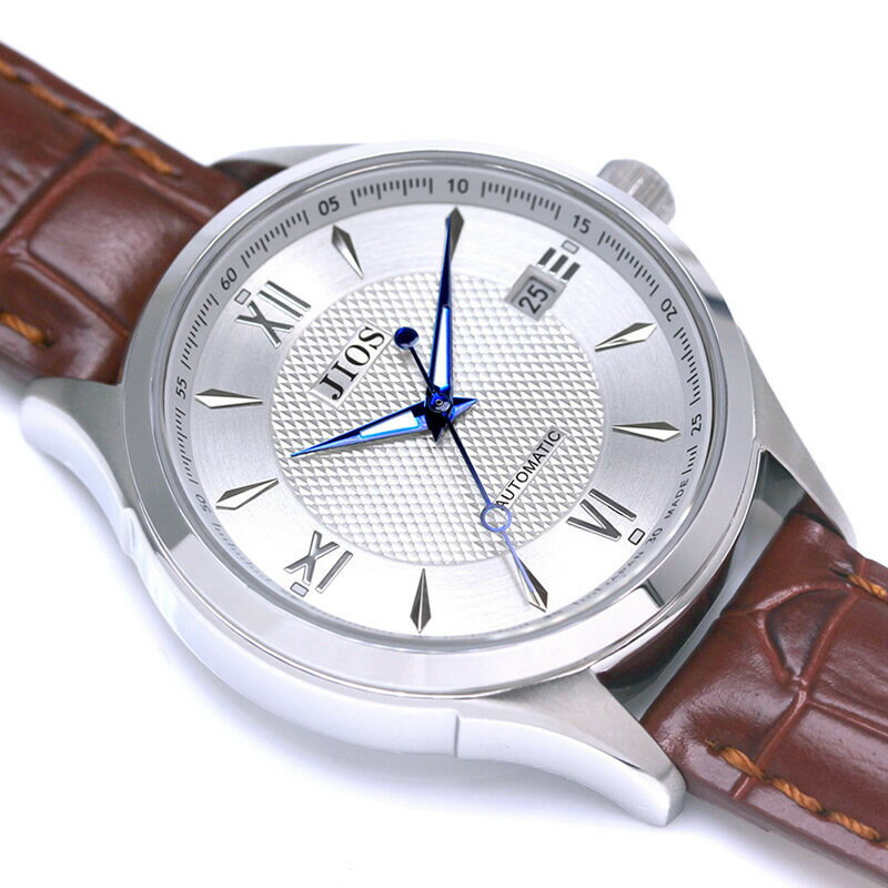 - 【ふるさと納税】JIOS SEIRAN 日本製 自動巻き腕時計 メンズ 男性用 革ベルト ブランド ドレスウォッチ ジオス シルバー文字盤 ×<シルバー針または青針より選択可>クロコ型押しベルト(ブラウン)