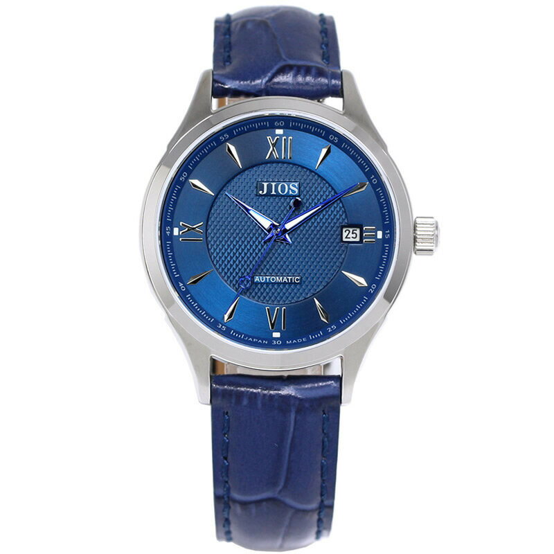 - 【ふるさと納税】JIOS SEIRAN 日本製 自動巻き腕時計 メンズ 男性用 革ベルト ブランド ドレスウォッチ ジオス ブルー文字盤 ×<青針またはシルバー針より選択可>クロコ型押しベルト(青)