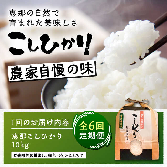 - 【ふるさと納税】【6回定期便】 こしひかり 白米 10kg×6ヵ月 恵那 / 米 こめ コメ 白米 精米 こしひかり コシヒカリ おこめ お米 産地直送 おすすめ 人気 恵那市産 ブランド米 おにぎり お弁当 炊き込みご飯 /恵那市/おこめのささき[AUAT006]