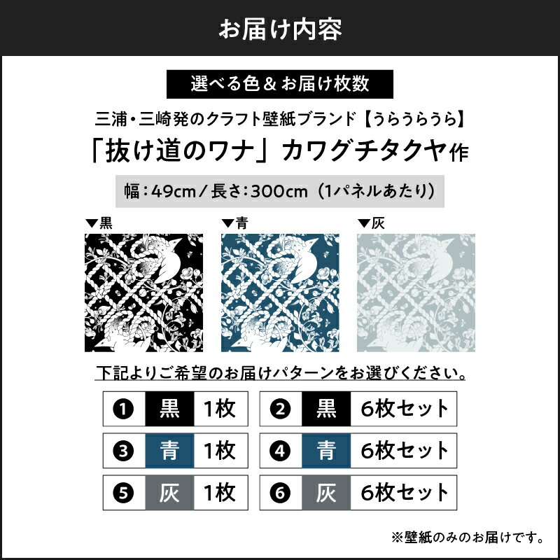 【ふるさと納税】<色と枚数が選べる> 三浦 三崎発のクラフト壁紙ブランド うらうらうら 「抜け道のワナ」 カワグチタクヤ作 黒 青 灰 壁紙 インテリア 壁画 水彩 ウォール アート 壁紙屋 good day house In Detail 神奈川県 三浦市 おすすめ ランキング プレゼント ギフト