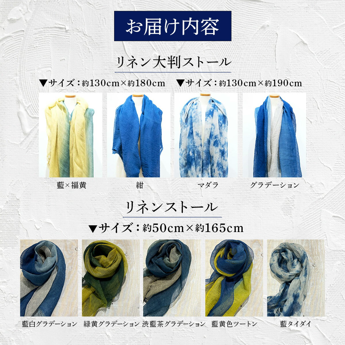 【ふるさと納税】【選べるサイズ・デザイン】石垣島の藍染工房 島藍農園 リネンストール KB-168-gra|石垣 石垣市 ファッション ストール リネン おしゃれ ファッション小物 伝統