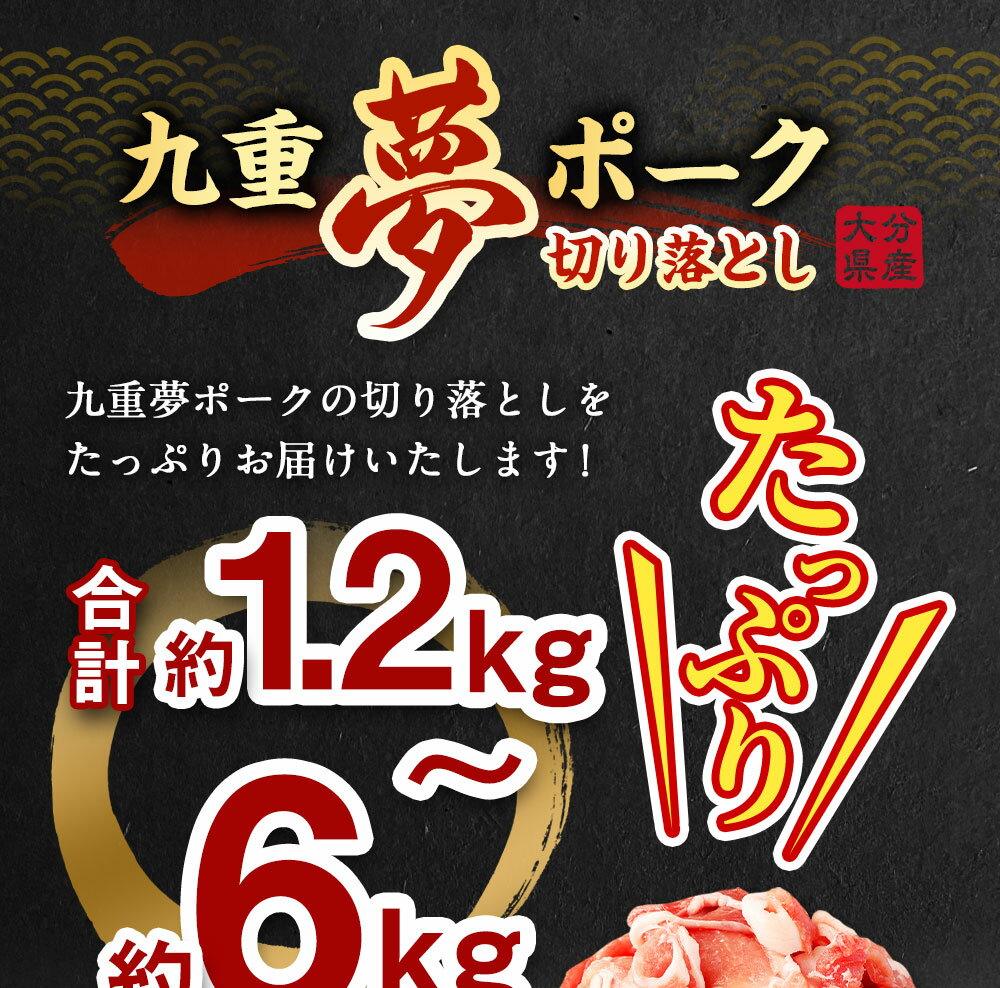【ふるさと納税】【選べる容量】九重夢 ポーク お米豚 切り落とし ( お試し 約1.2kg ) / 約2kg / 約2.5kg / 約3kg / 約3.5kg / 約4kg / 約4.5kg / 約5kg / 約5.5kg / 約6kg SPF豚 豚肉 小分け 真空パック お肉 切落し 国産 九州産 大分県産 九重町産 冷凍 送料無料