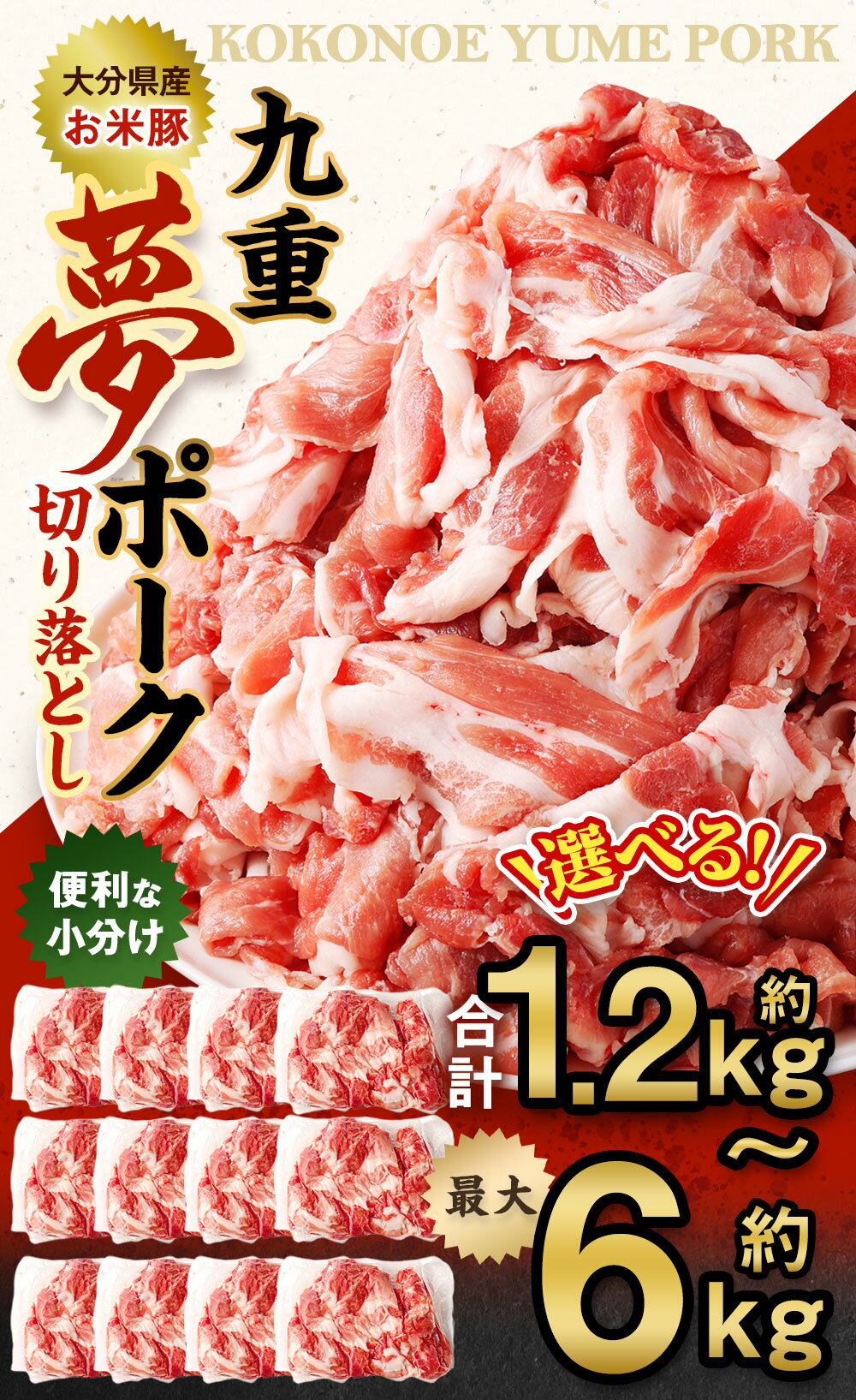 - 【ふるさと納税】【選べる容量】九重夢 ポーク お米豚 切り落とし ( お試し 約1.2kg ) / 約2kg / 約2.5kg / 約3kg / 約3.5kg / 約4kg / 約4.5kg / 約5kg / 約5.5kg / 約6kg SPF豚 豚肉 小分け 真空パック お肉 切落し 国産 九州産 大分県産 九重町産 冷凍 送料無料