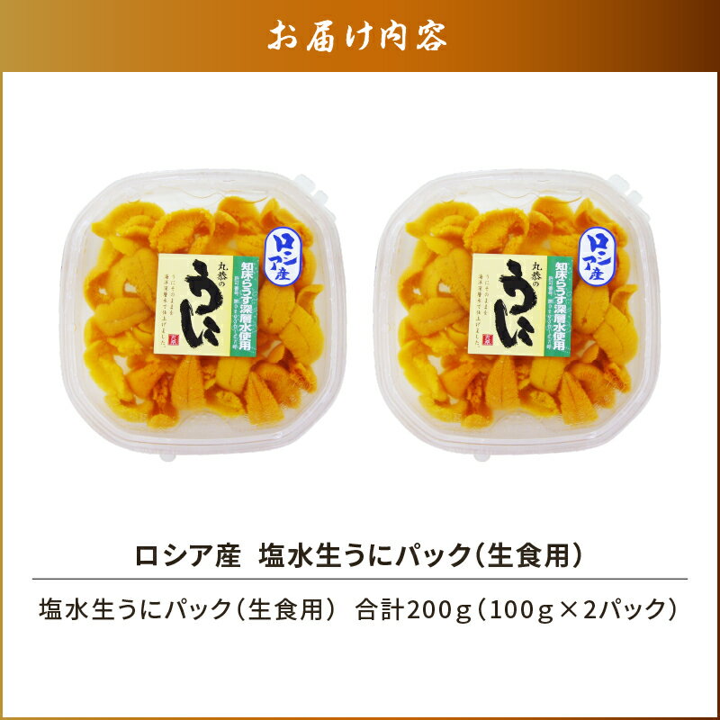 - 【ふるさと納税】【期間限定】ロシア産 塩水生うにパック(生食用) 合計200g 魚介類 水産 食品 人気 おすすめ 送料無料 丸恭水産 北海道 苫小牧市 おすすめ ランキング プレゼント ギフト