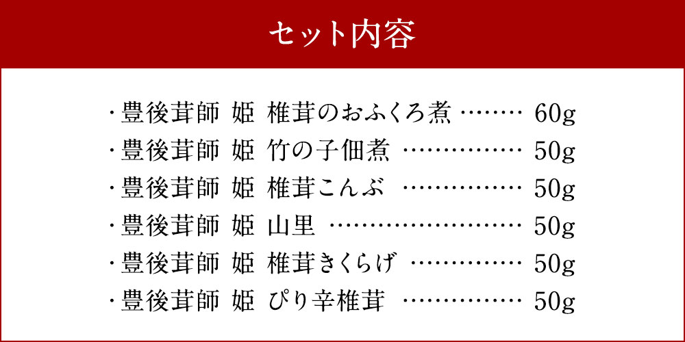 - 【ふるさと納税】大分県産 豊後茸師 ぶんごなばし 姫 佃煮6ケ詰合せ しいたけ タケノコ 昆布 ちりめん ゆず 佃煮 詰め合わせ ご飯のお供 惣菜 つくだ煮 セット 化学調味料不使用 国産 九州産 原木 FBN10 送料無料