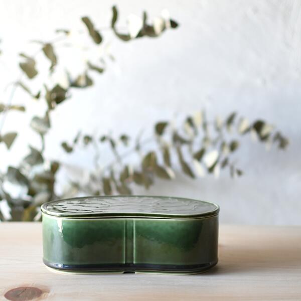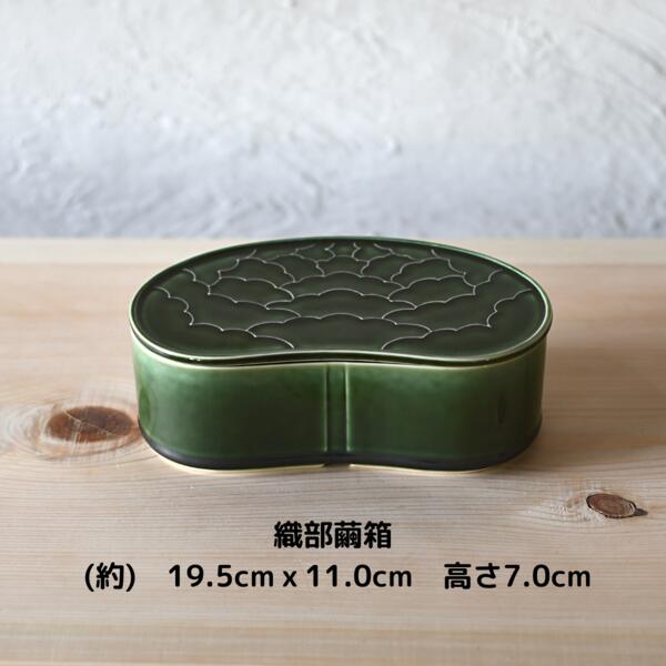 - 【ふるさと納税】有田焼 織部釉 繭型蓋物 19.5cm 11cm 7cm【ARITAYAKI-STORE】 有田焼 陶器 食器 蓋物 和食器 重箱調 繭型 織部釉 手作り 伝統工芸品 アリタ うつわ 高級感 A24-144