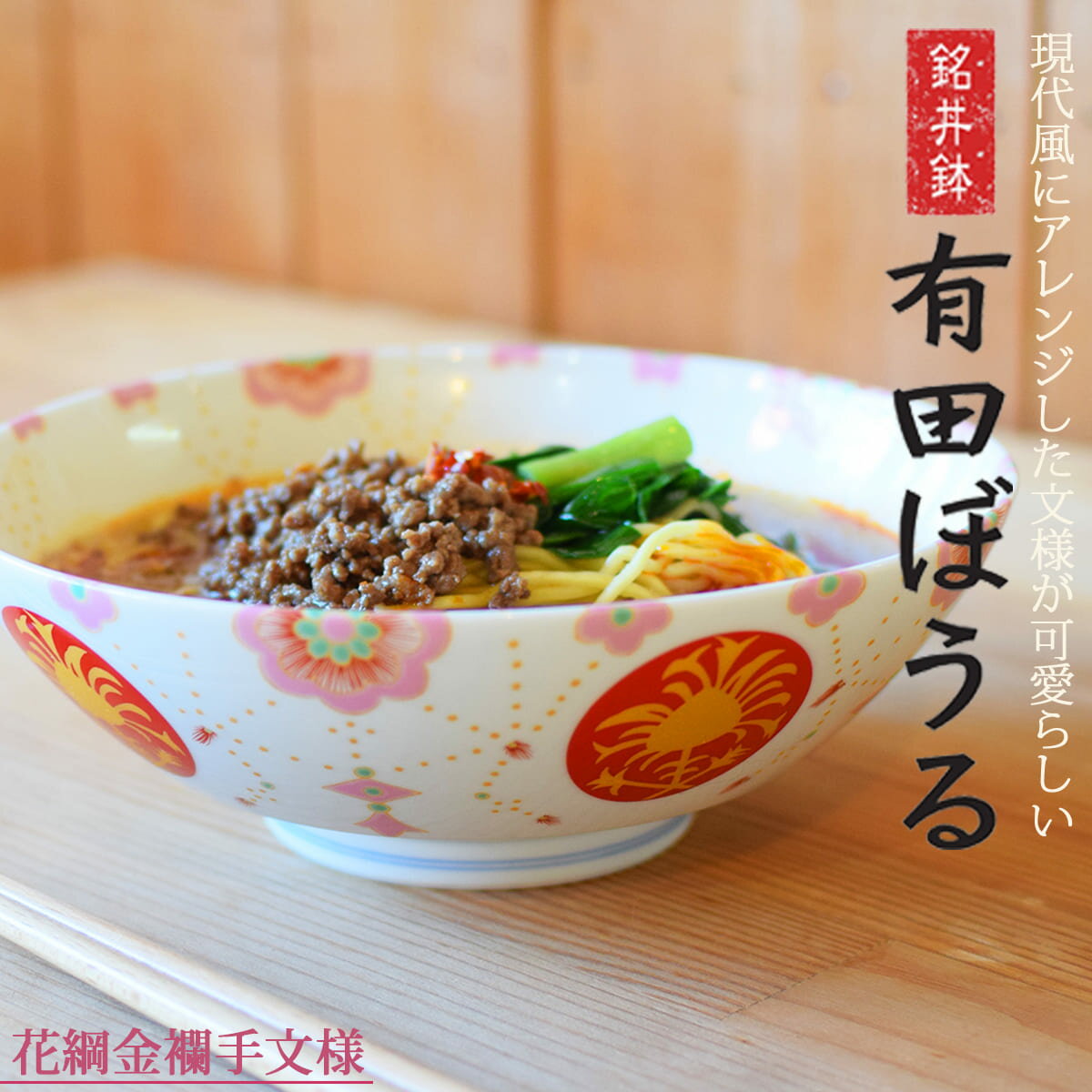 - 【ふるさと納税】錦花綱金襴手AritaBOWL 食卓で活躍!華やかピンク麺鉢 有田焼 幸楽窯 A18-179