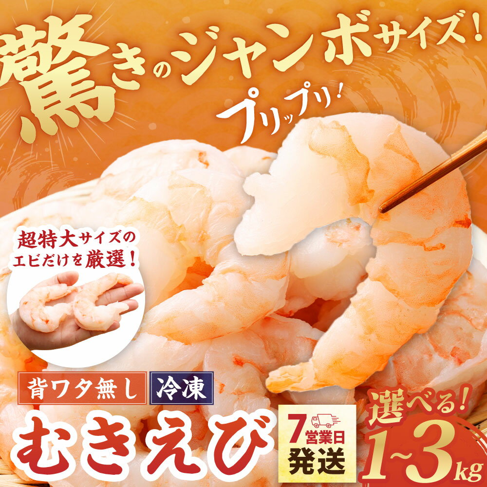 【ふるさと納税】【選べる容量】驚きのジャンボサイズ(背ワタ無し)むきエビ 冷凍 1kg / 2kg / 3kg【入金確認後7営業日程度で発送】|冷凍エビ 特大エビ エビ 海老 むきえび 下処理済 殻剥き 時短 エビフライ 天ぷら エビチリ 大容量 訳あり 大阪府 阪南市 送料無料