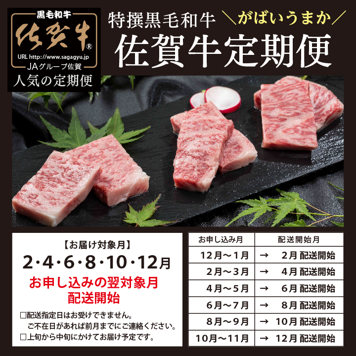 - f-18【定期便6回】佐賀牛を偶数月に6回お届け 食べ比べ