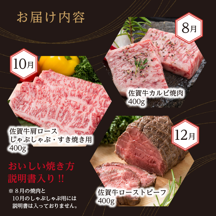 【口コミの良いお肉を集めました♪】人気品を厳選!お手軽 佐賀牛定期便 通年4回【有田まちづくり公社】佐賀牛 牛肉 黒毛和牛 極上の佐賀牛 厳選 お肉 おにく ローストビーフ カルビ焼肉 しゃぶしゃぶ すき焼き 4回 定期便 ギフト 贈答 贈り物 60000円 6万円 N60-13