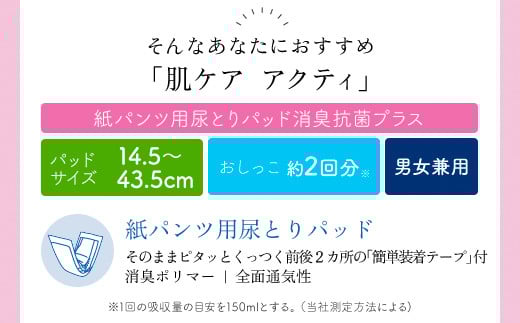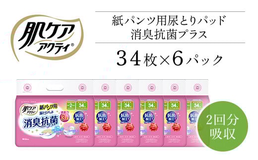 肌ケアアクティ 紙パンツ用尿とりパッド消臭抗菌プラス 2回分吸収 34枚×6パック / 介護 紙おむつ ヘルスケア