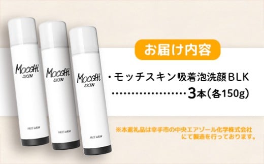 モッチスキン吸着泡洗顔BLK 150g×3本セット - 洗顔 吸着泡 泡 しっとり はちみつ配合 美容 スキンケア クレンジング 美肌 毛穴 ニキビ 肌荒れ くすみ 乾燥 埼玉県 幸手市