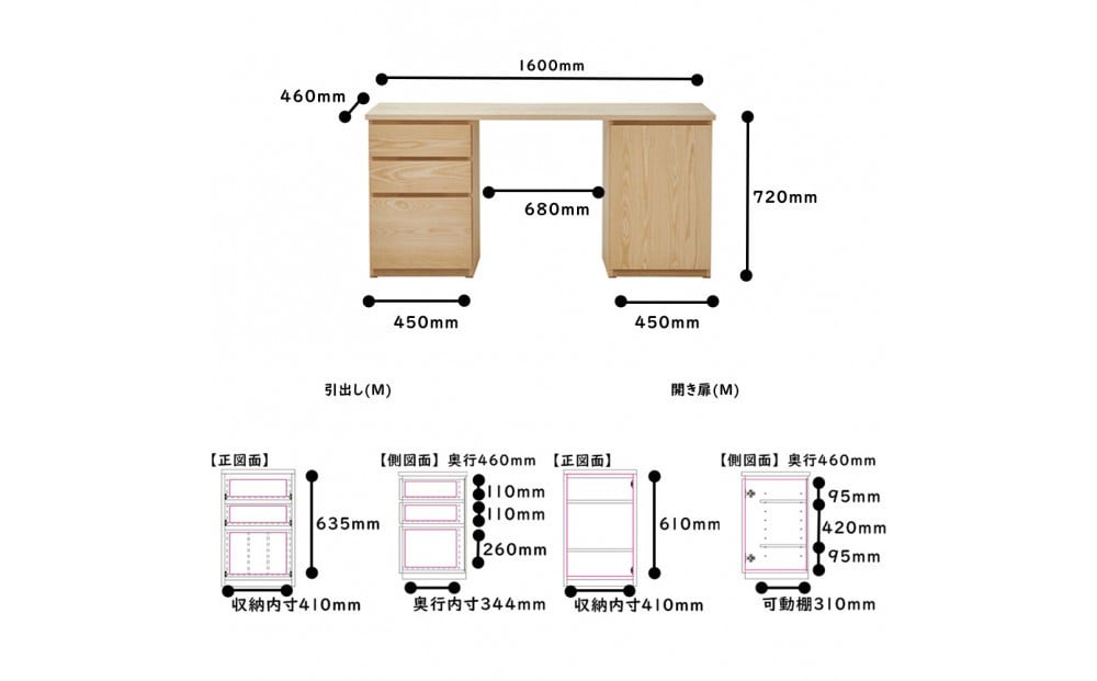 - 【大川家具】無垢材 システムデスク 幅1600mm テーブル パソコンデスク 子供机 勉強机 学習机 書斎デスク HM-TMR ホワイトアッシュ 天然木 モダン 国産 無垢材 高級感【設置付き】