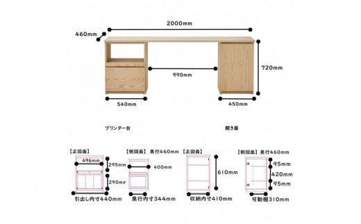 - 【大川家具】無垢材 システムデスク 幅2000mm テーブル パソコンデスク 子供机 勉強机 学習机 書斎デスク HO-TMR ホワイトアッシュ 天然木 モダン 国産 無垢材 高級感【設置付き】