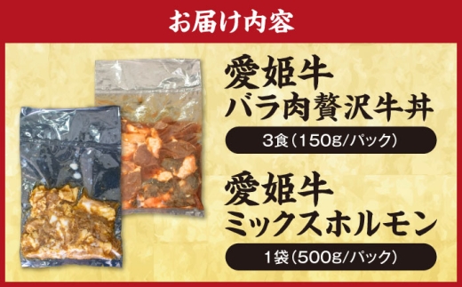 - 肉【冷凍】 愛姫牛 肉屋のこだわりお惣菜セット 牛丼×3食とミックスホルモン×500g 計950g 愛媛県大洲市/有限会社 木村屋精肉店 牛丼 牛肉 和牛 牛 国産 [AGCC072]国産和牛 愛媛県産 大洲市産 人気 おすすめ ランキング 簡単 おいしい お肉 肉 国産肉 焼肉 送料無料 お取り寄せ グルメ ホルモン 冷凍 焼き肉 BBQ バーベキューグルメ 冷凍 簡単調理 牛皿 牛めし