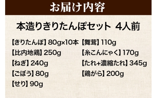 - 《12月発送》きりたんぽ セット 本造り 4人前 (きりたんぽ 10本 比内地鶏 250g 野菜付き) 秋田県産 鍋